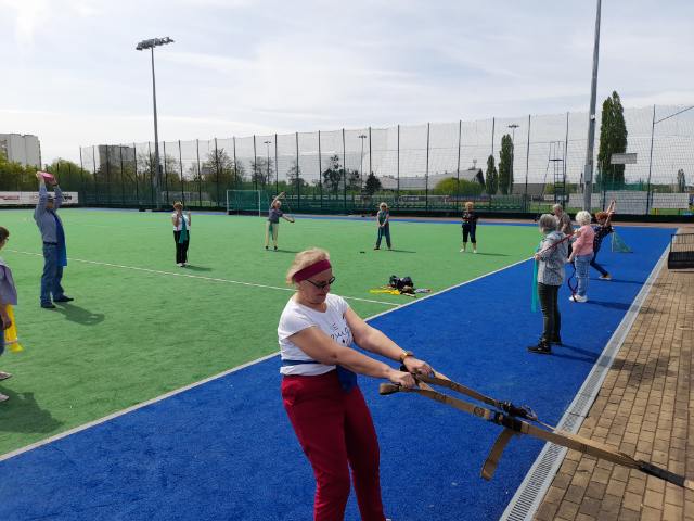 We wtorek, 29 kwietnia były zajęcia sportowo-rekreacyjne pod kierunkiem Katarzyny Matelli. Seniorzy na świeżym powietrzu wykonywali ćwiczenia rozciągające z użyciem taśm, a także mieli elementy ćwiczeń z jogi na siedząco.