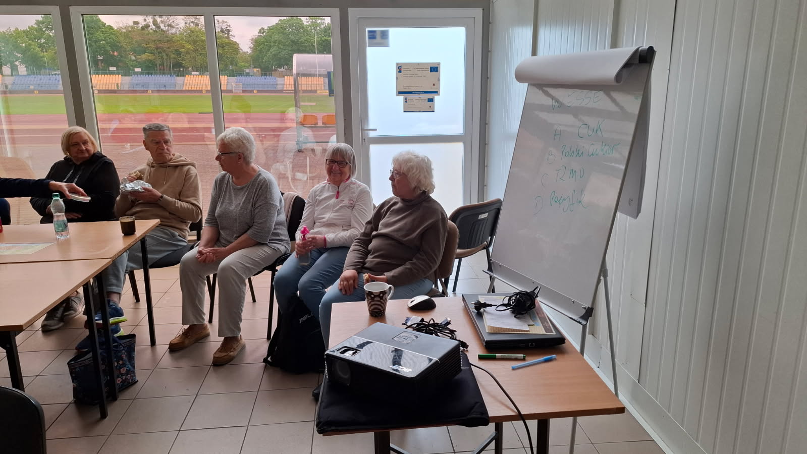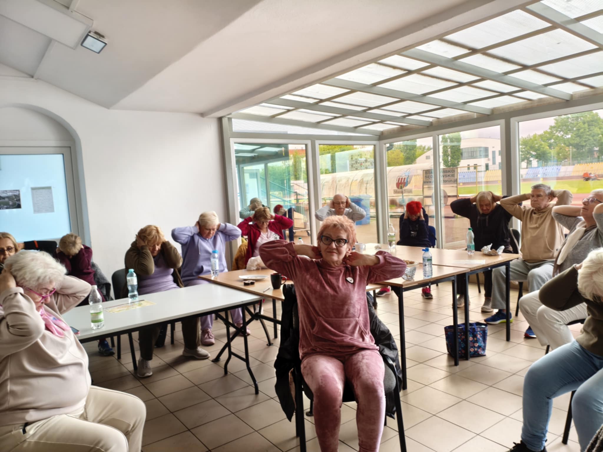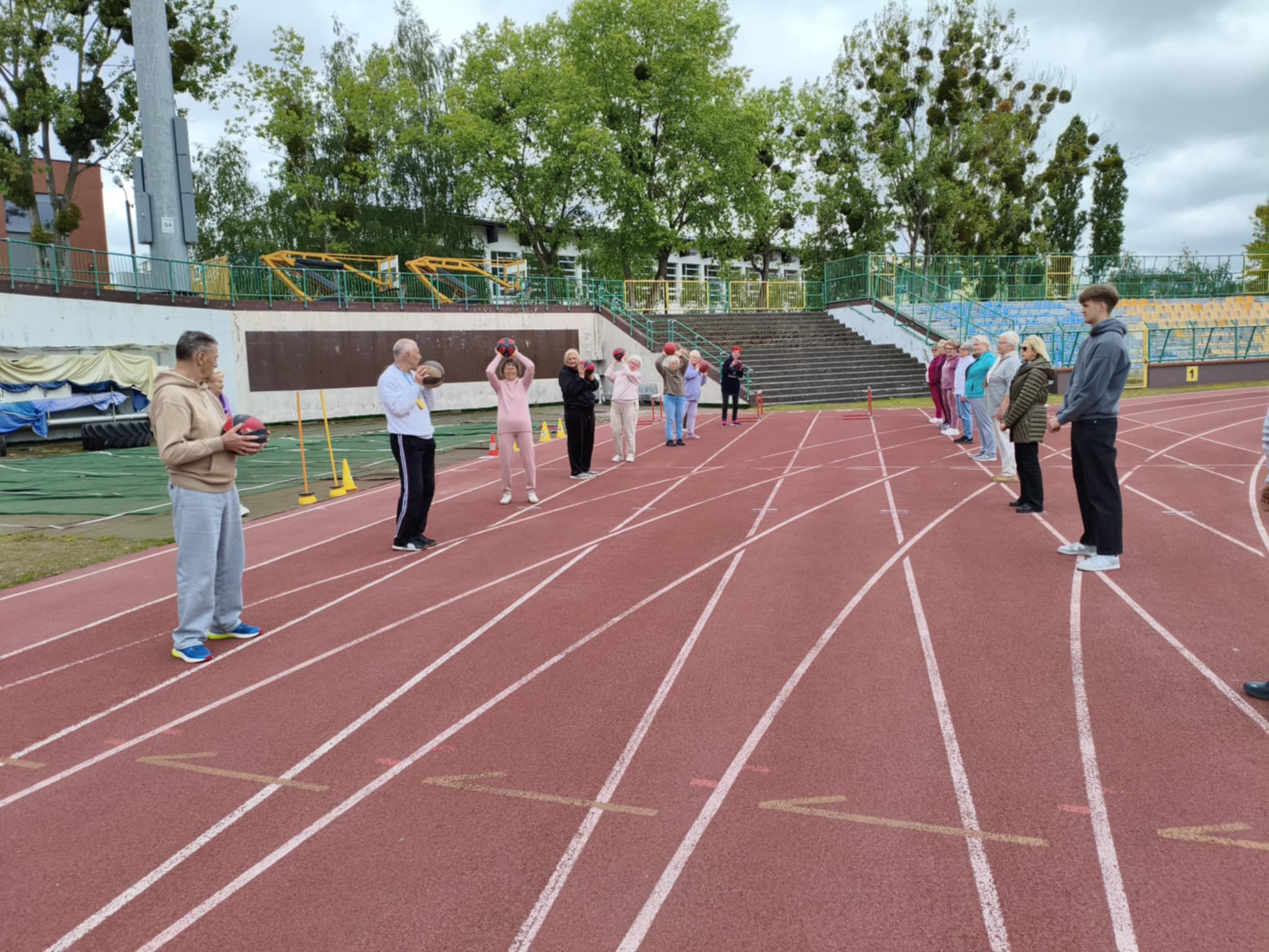 Potem "w obroty" wzięła nas Katarzyna Matella i Gabriel Mańkowski. Mieliśmy rozgrzewkę lekkoatletyczną, wykonywaliśmy podstawowe ćwiczenia w rzutach. Były też ćwiczenia rozluźniające i wzmacniające mięśnie brzucha.