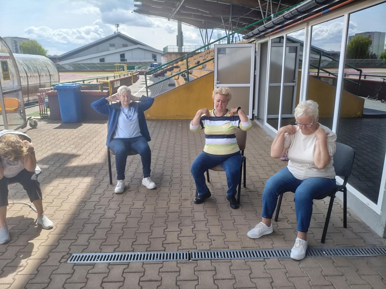 Zajęcia z Kasią to ćwiczenia jogi na krzesłach oraz wzmacniające na siłowni zewnętrznej. Tu też było fajnie i wesoło - jak zwykle.