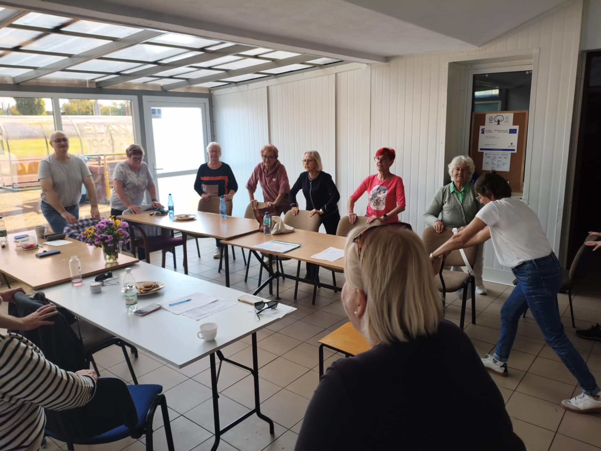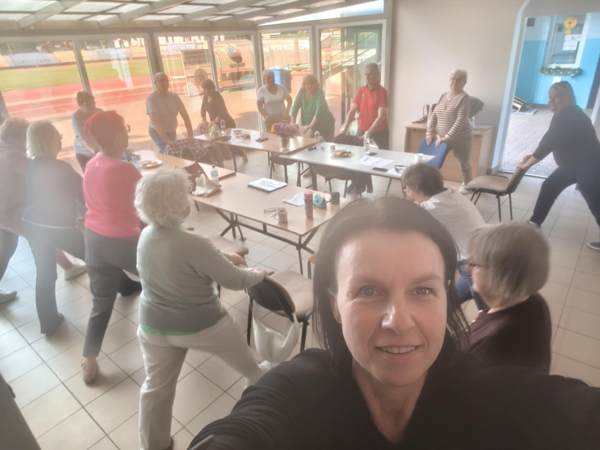 I tak rozgrzani przez taniec byliśmy gotowi do zajęć z Kasią, a tu była joga na krzesłach i ćwiczenia oddechowe.